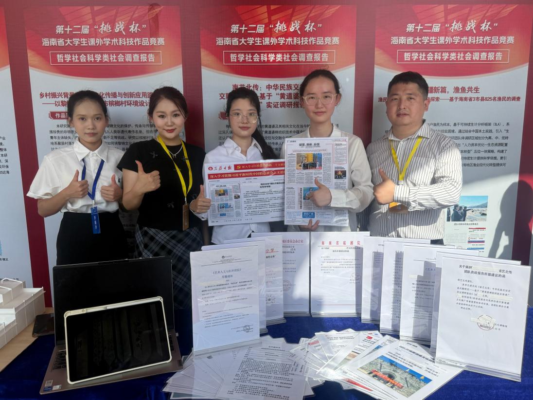 6月9日—6月11日,第十二届“挑战杯”海南省大学生课外学术科技作品竞赛及颁奖典礼在海南大学举行。由丁金金、李洋、郑力乔三位老师指导,学生王妍、贺玺瑜、刘娜雅、景悦、任芳、汲坤屿组成的“南艺北传”团队作品《南艺北传:中华民族交往交流交融研究——基于黄道婆棉纺织技术传承实证调查报告》荣获海南省第十二届“挑战杯”竞赛特等奖;由丁金金、温淑窈、黄明智三位老师指导,学生代长粱、杜硕滢、汲坤屿、袁胡贝雅组成的“琼韵兴乡”团队作品《乡村振兴背景下海南戏剧(琼剧)公共文化空间的社会功能转型社会调查报告》荣获海南省第十二届“挑战杯”竞赛一等奖!